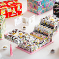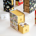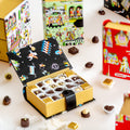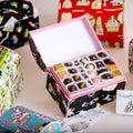 How are these sweet pralines actually packaged? These "sweet boxes," as we Viennese affectionately call them, are wrapped in paper designed by the Wiener Werkstätten and come in various forms such as chests of drawers, pull-out cassettes, hatboxes, and more. They are available and sent as sweet treasures to the whole world.