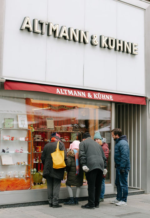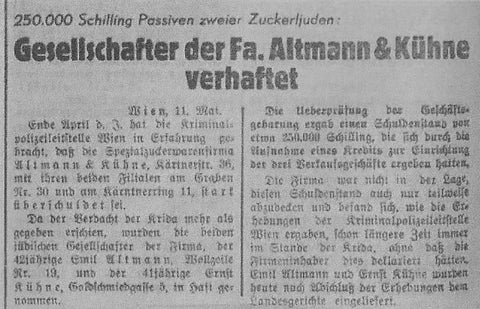 Emil Altmann, born according to the Israelite Community in Vienna on April 29, 1895, and Ernst Kühne, husband of Wilma Altmann, established the shop Altmann & Kühne on June 20, 1928. It quickly became the fourth prestigious chocolatier in Vienna and soon became the most exclusive producer of fine chocolate delicacies in the city. Over the following years, Altmann & Kühne expanded to open two more shops in Vienna's city center, in addition to the original store on Graben 30.